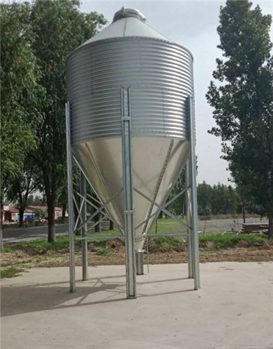 鍍鋅儲料塔又叫飼料貯存塔、料塔,是一種合用于范圍化大、中型養殖場的一種儲料裝備,在其出料口配輸料裝備,可按時向舍內保送飼料。